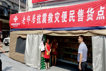 • 公司在蘆山(shān)地(dì)震蘆山(shān)災區(qū)開(kāi)設帳篷超市(shì)